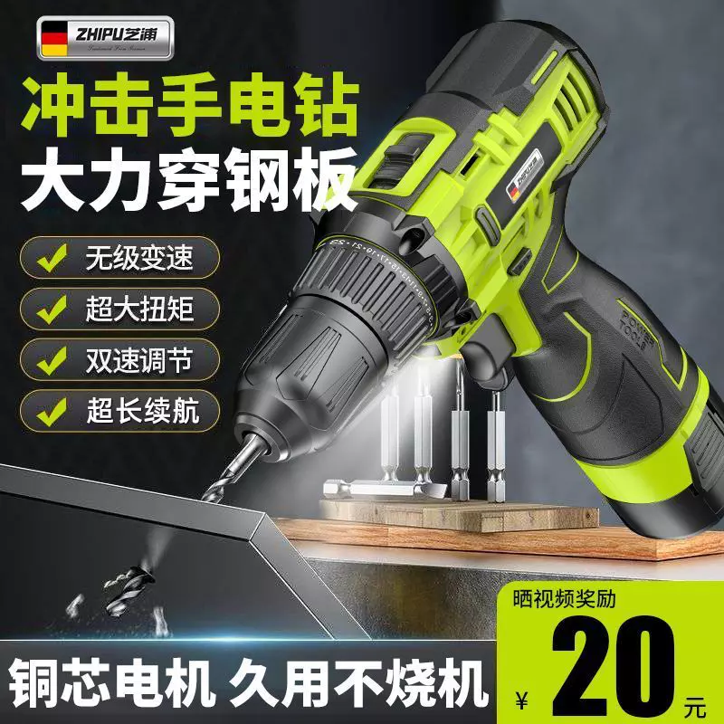 芝浦手电钻锂电钻大功率家用冲击充电钻打墙锂电池手枪钻电动螺丝